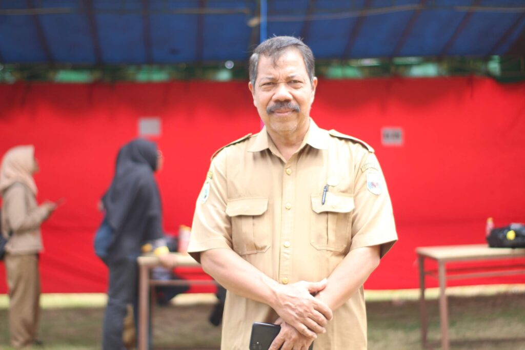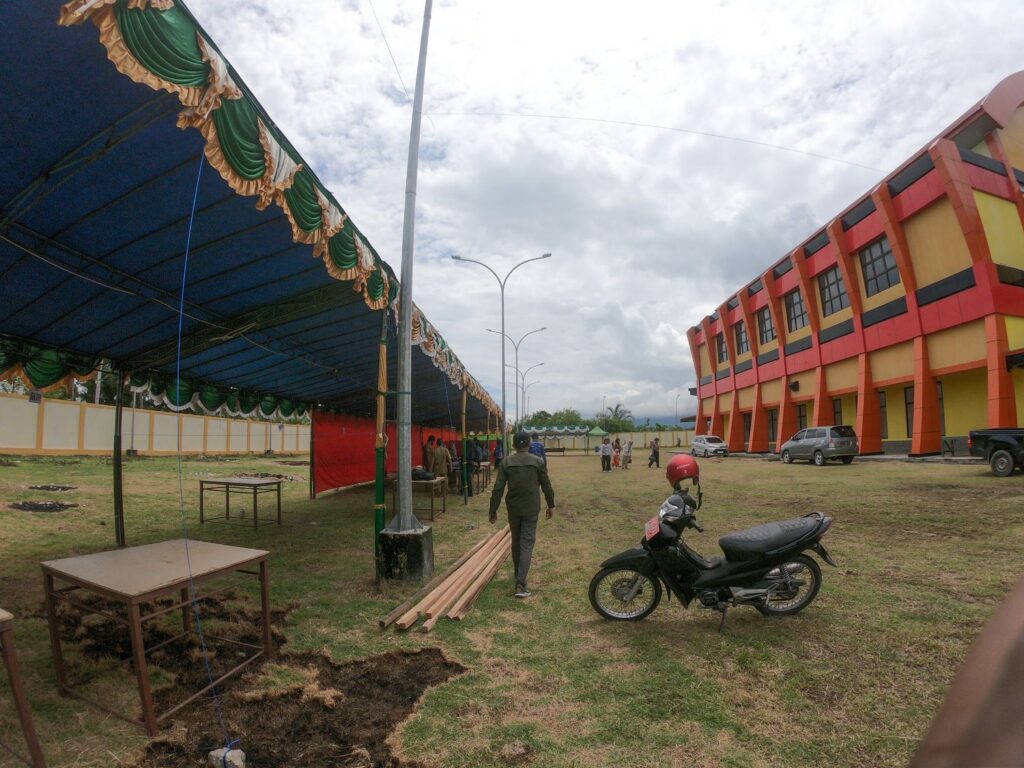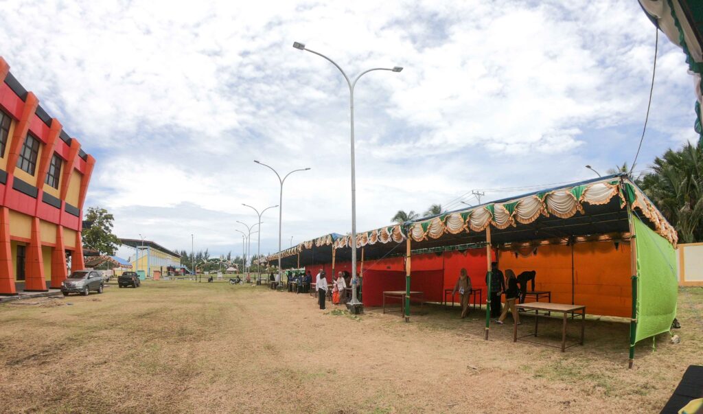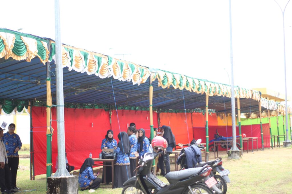 Kepala Seksi Bina Usaha Perdagangan, Sukarno, SE.,MM saat mengecek kesiapan lokasi Pameran