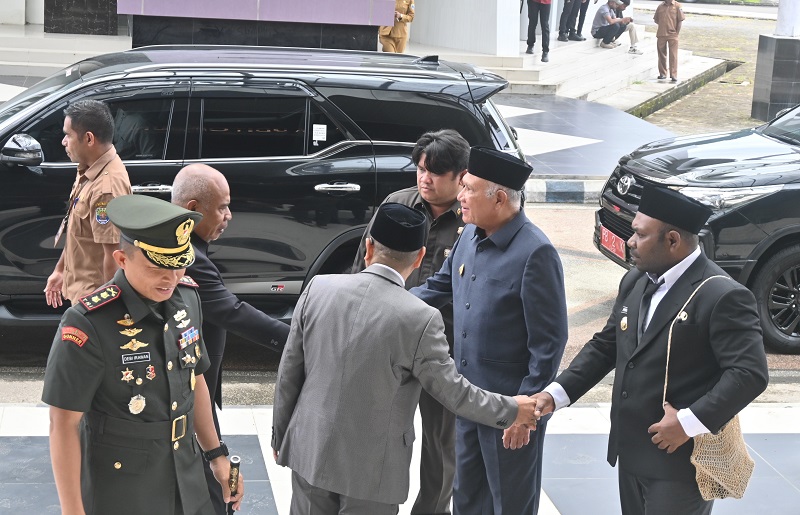 Bupati Kaimana Drs. Hasan Achmad, M. Si, didampingi Wakil Bupati Kaimana Isak Wariensi, S. Tr., bersama Ketua DPRK Kaimana, Memasuki Ruang Sidang Aula DPRK Kaimana.