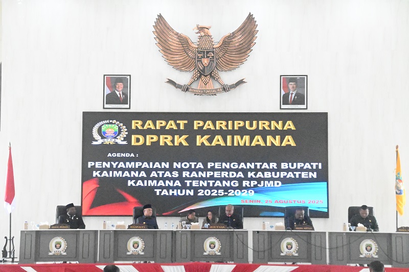 Hadir dalam penyampaiaan Nota Pengantar atas Rancangan Peraturan Daerah (Ranperda) tentang Rencana Pembangunan Jangka Menengah Daerah (RPJMD) Kabupaten Kaimana Tahun 2025–2029, Bupati Kaimana Drs. Hasan Achmad, M. Si, didampingi Wakil Bupati Kaimana Isak Wariensi, S. Tr., Pimpinan dan Anggota DPRK Kaimana, serta jajaran Forkopimda, Sekretaris Daerah, para Asisten, Kepala OPD, Tokoh Masyarakat, dan undangan lainnya.