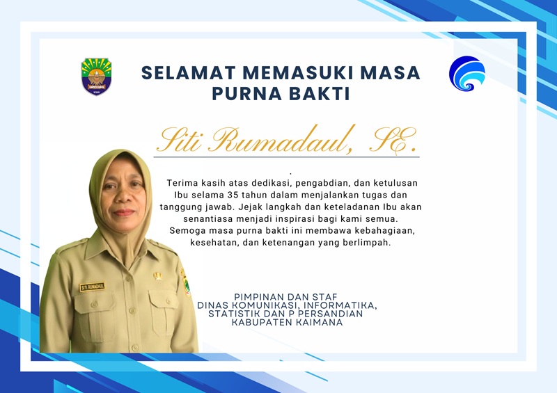 KOMINFO KAIMANA – Dinas Komunikasi, Informatika, Statistik dan Persandian Kabupaten Kaimana menggelar acara Perpisahan Purna Bakti Kasubag Perencanaan Keuangan, Ibu Siti Rumadaul, SE. pada hari Senin (03/11/2025) bertempat di Ruang Rapat Dinas Kominfo Kaimana.